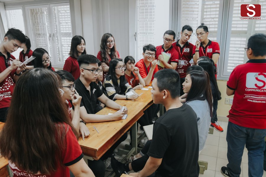 Vòng Teamwork được chia làm 3 ca thi để các bạn có thể thoải mái lựa chọn giờ thi phù hợp với mình nhất. Dù chưa đến giờ G nhưng các bạn đã chuyện trò rôm rả, cứ như là đã thân quen từ trước. Phải chăng điều này xuất phát từ một điểm chung – niềm thích thú dành riêng cho S Đỏ đã kéo các bạn xích lại gần nhau hơn.